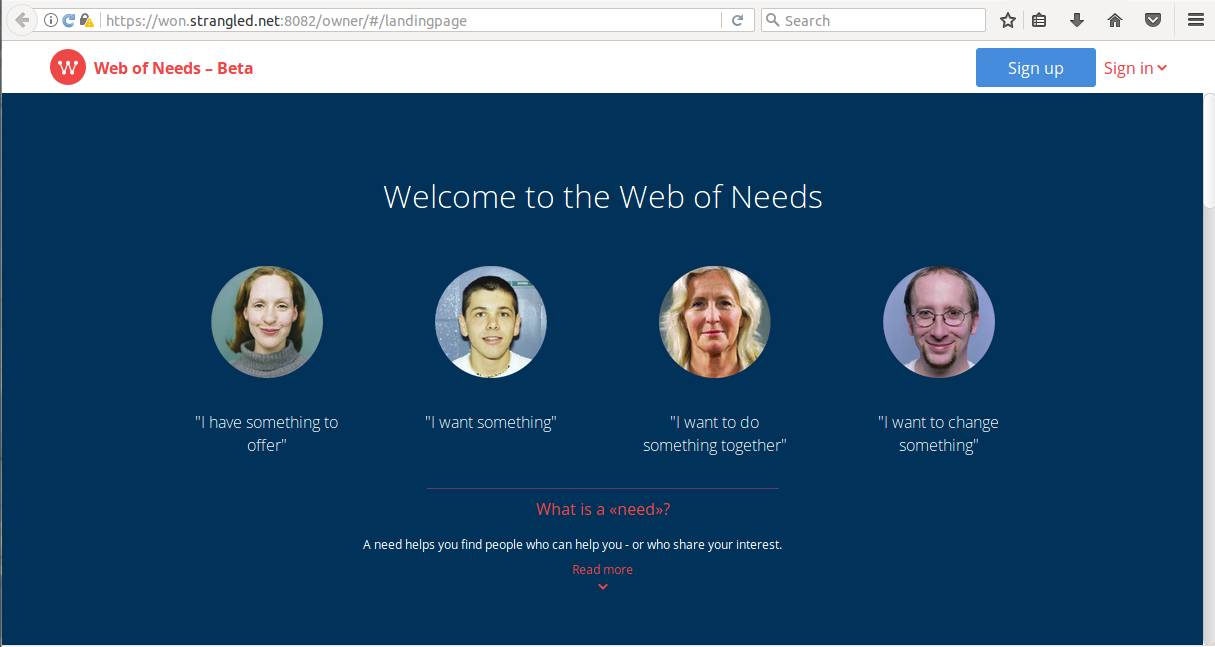 After confirming a security exception: https://won.strangled.net:8889/won/page/need/ resolves